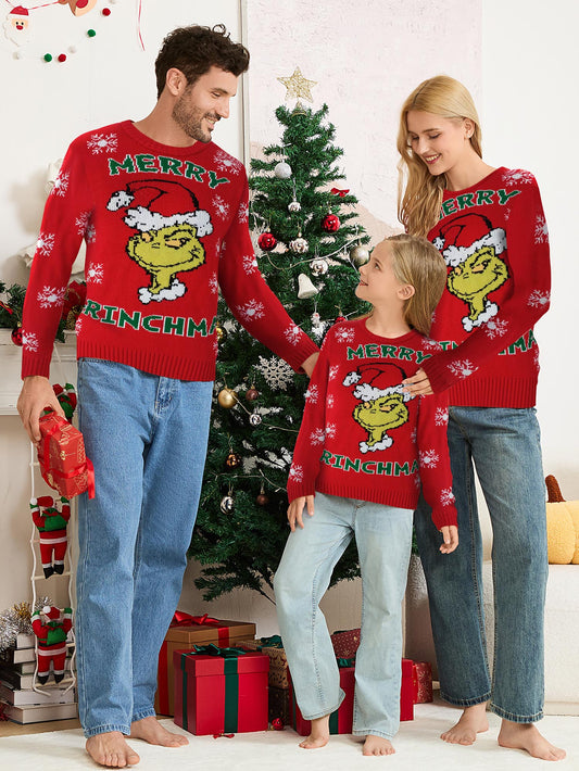 Green Monster Grinch Family Matching Red Christmas Ugly Sweater