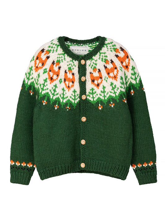 Handcrafted Fox Pattern Fair Isle Women’s Cardigan | 100% Wool Button-Up | NCS