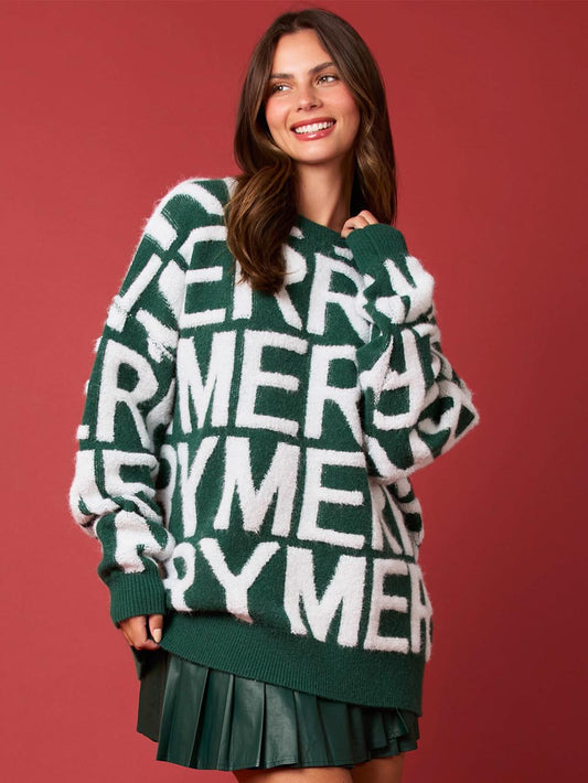 Women’s Christmas Letter Loose Pullover Sweater | NCS