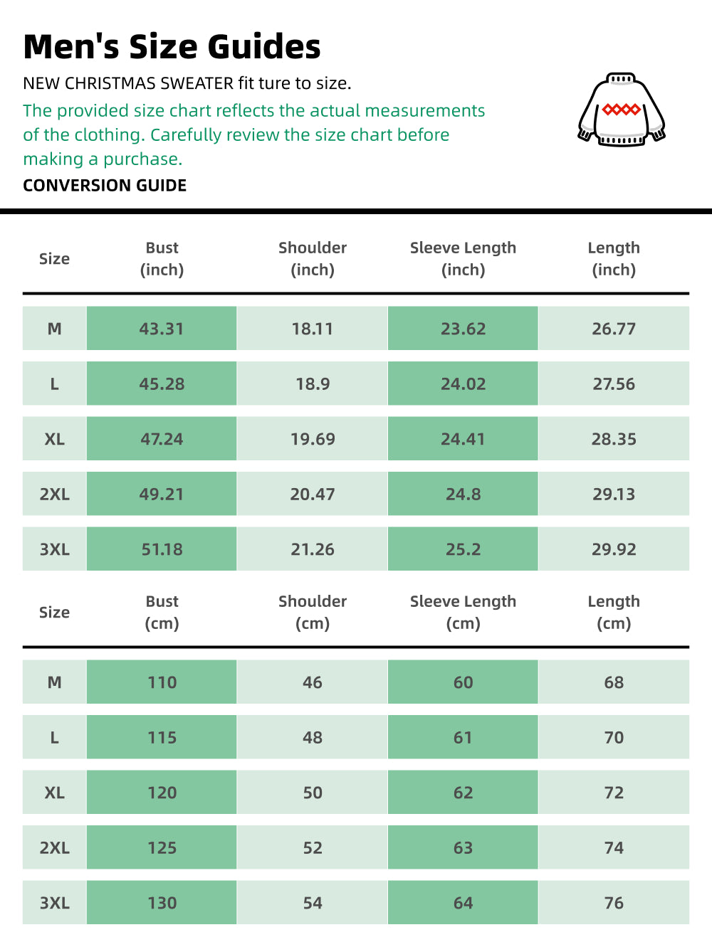 Check the Size Chart: The provided size chart reflects the actual measurements of the clothing. Carefully review the size chart before making a purchase.